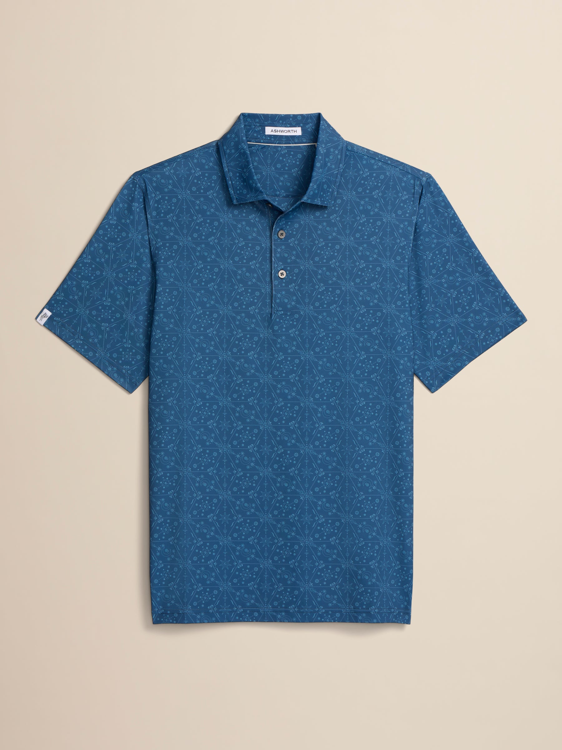 Inspired by the night sky, this all-over print polo adds a subtle statement to your lineup. Made from a lightweight, breathable fabric with built-in stretch for all-day comfort.
