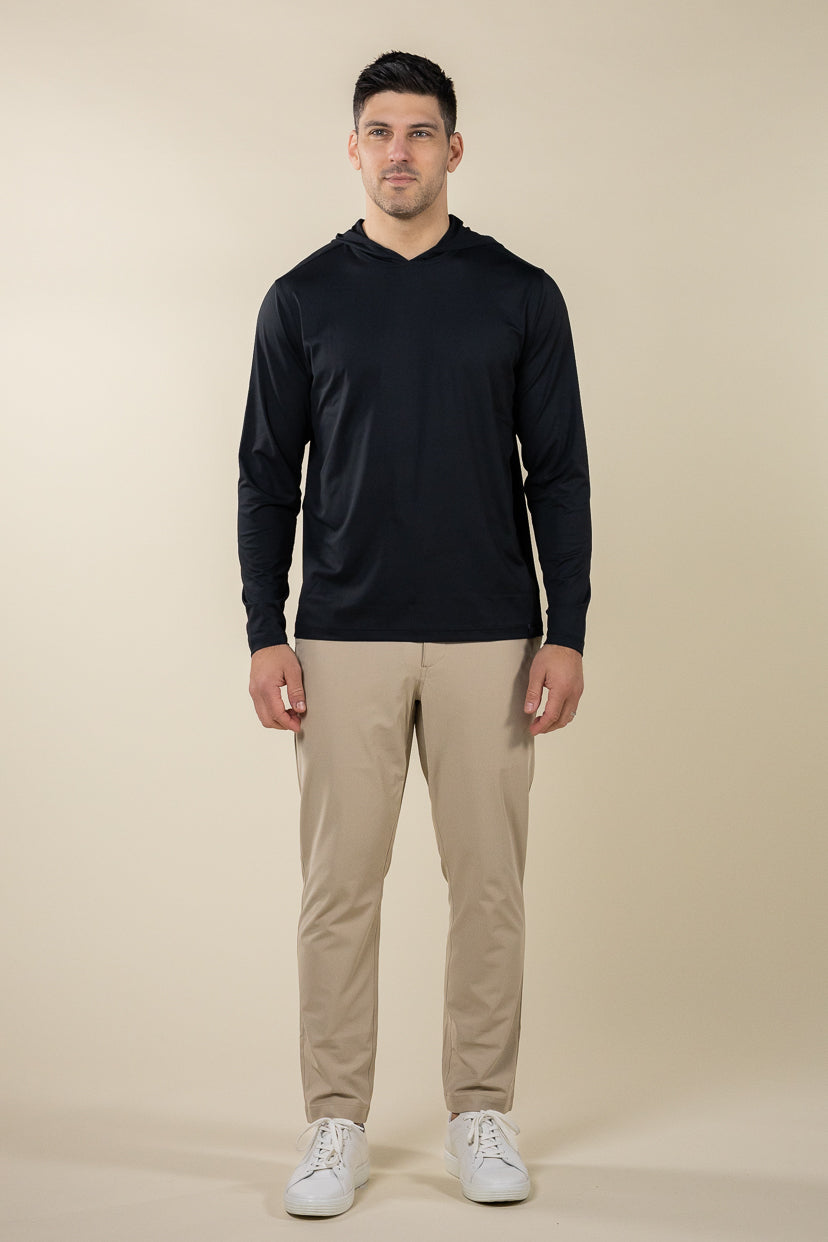 A modern performance hoodie designed with a clean, understated look. The Belmont Hoodie delivers lightweight warmth, stretch, and breathability, making it an easy layer for travel, warm-ups, or casual wear.