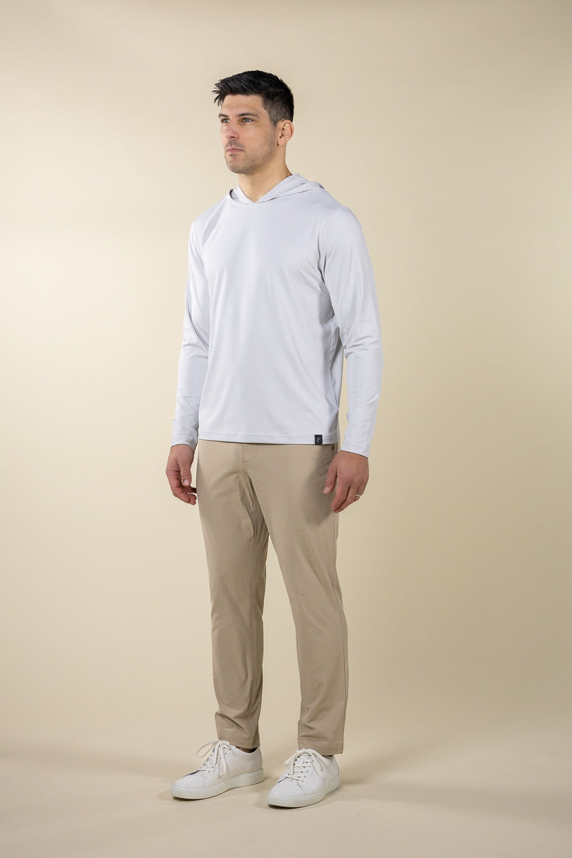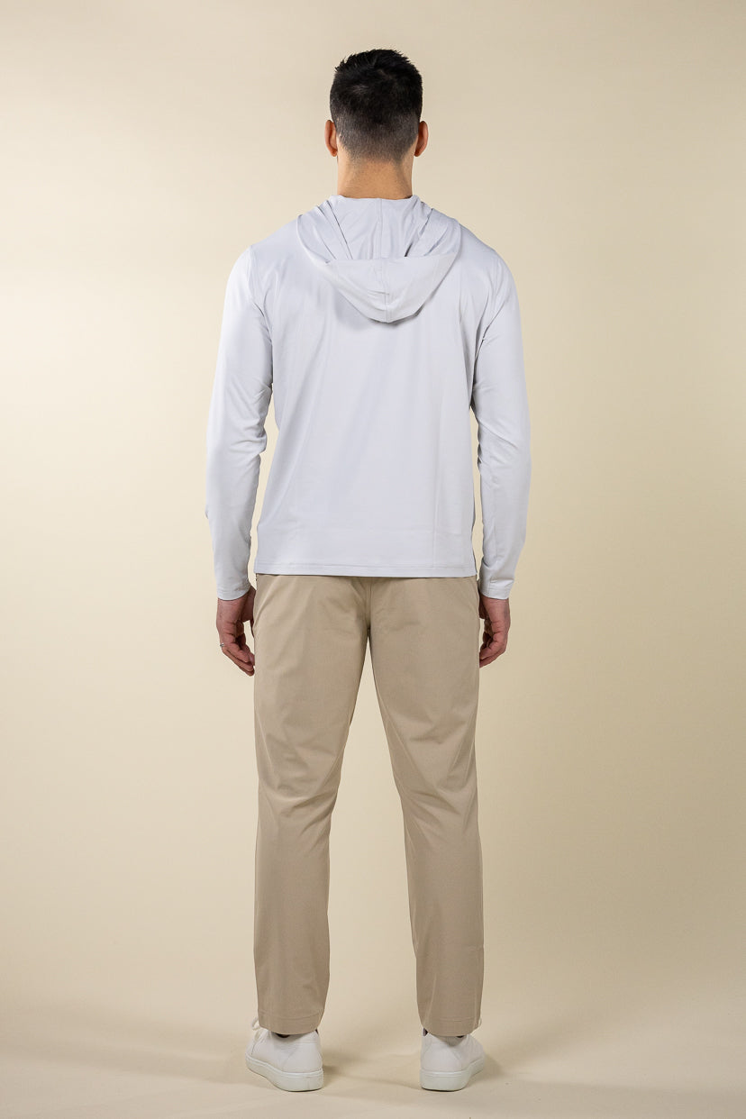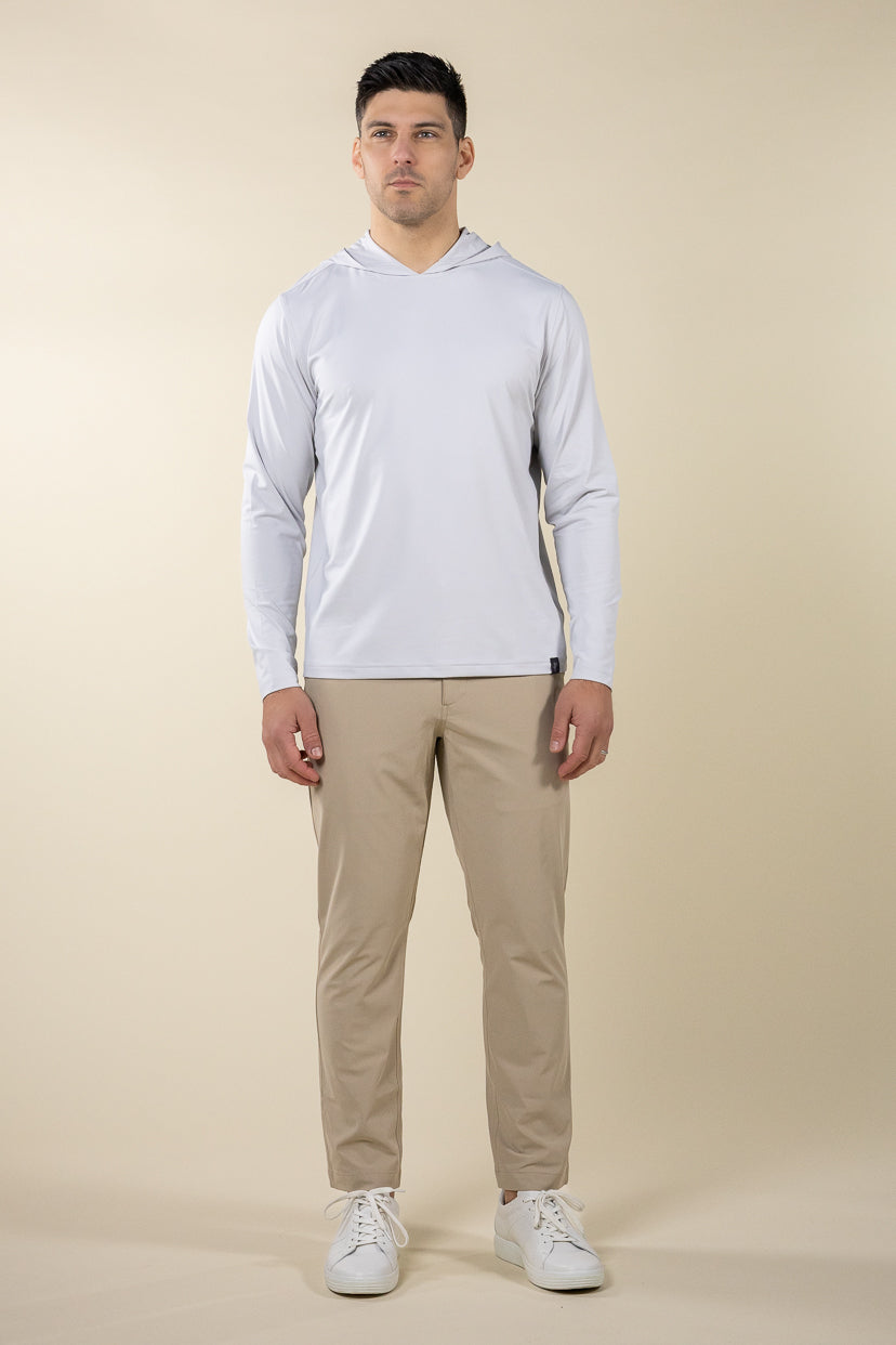 A modern performance hoodie designed with a clean, understated look. The Belmont Hoodie delivers lightweight warmth, stretch, and breathability, making it an easy layer for travel, warm-ups, or casual wear.