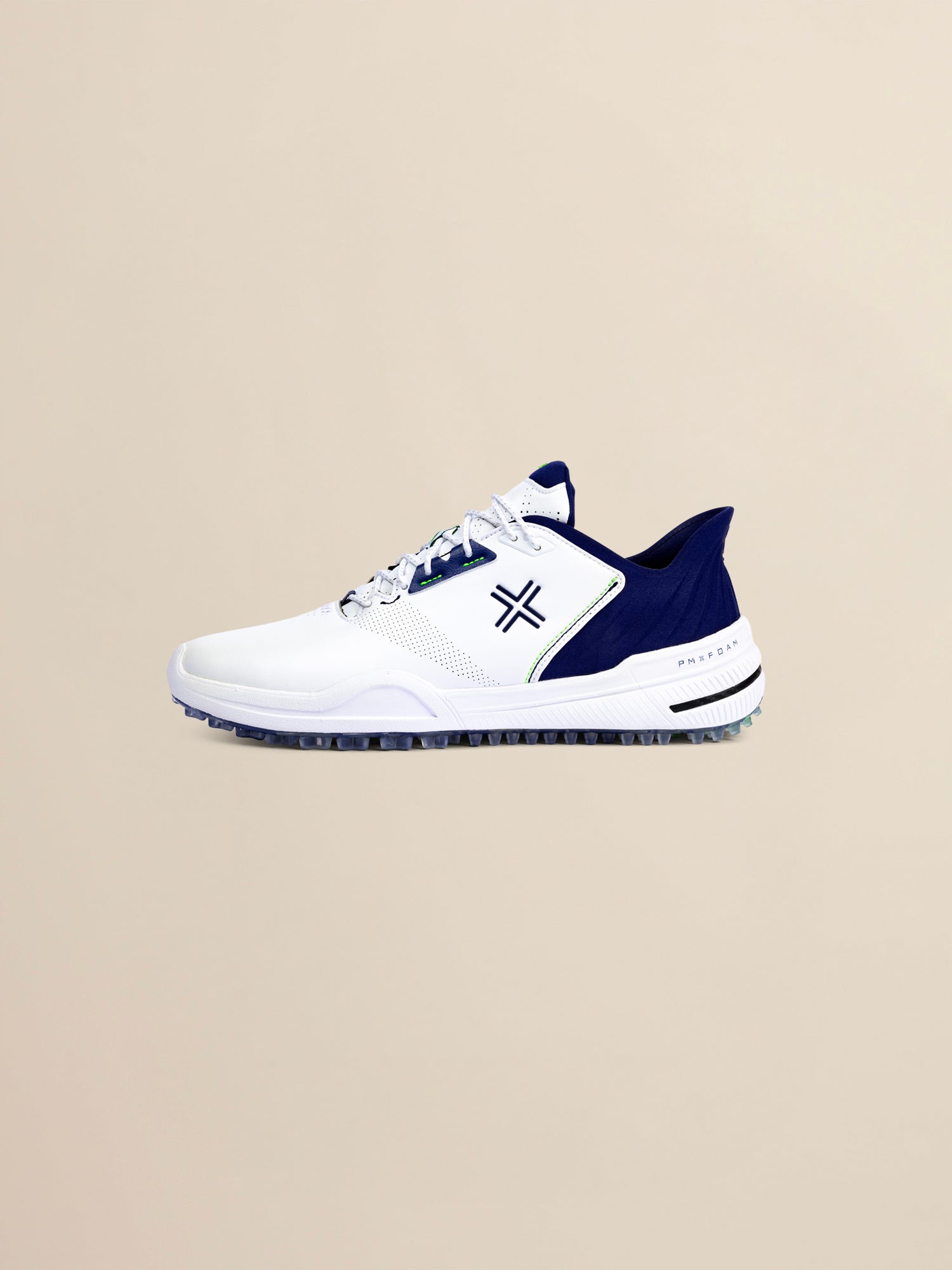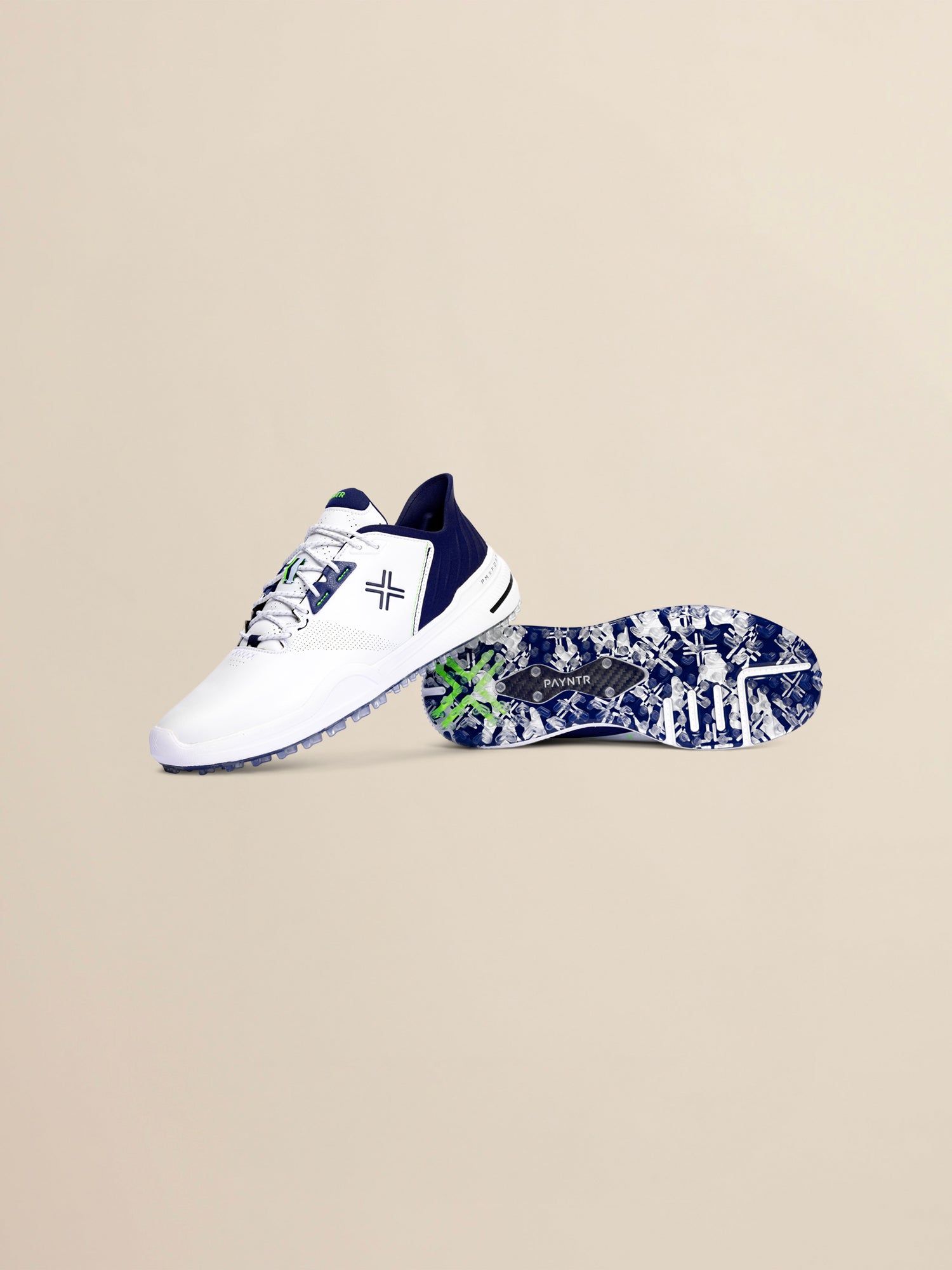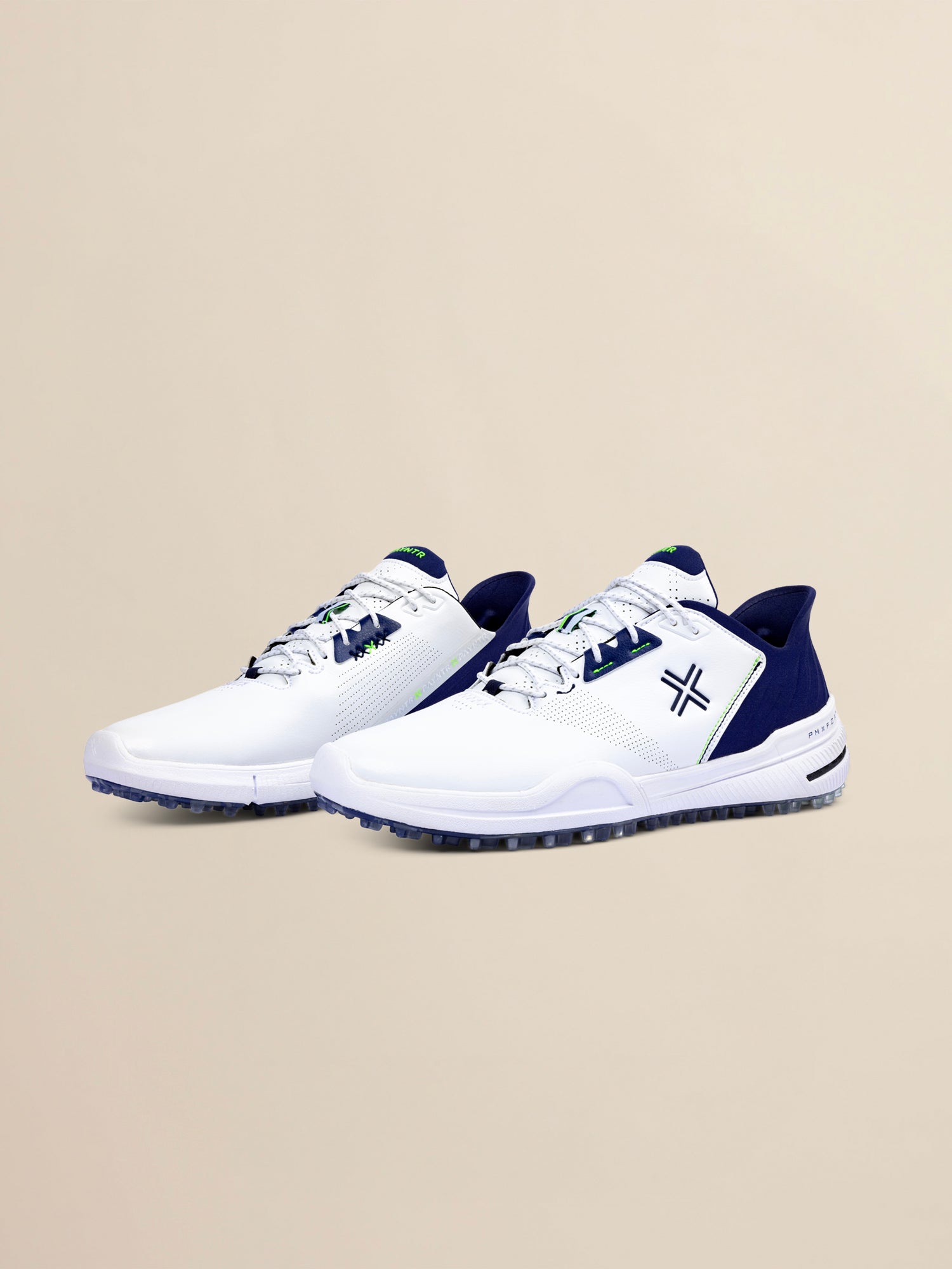 The X 005 delivers advanced performance in a sleek spikeless design. Featuring a CLARINO™️ Trivela microfiber upper with a blister-free PMX Fit heel counter, it offers all-day comfort and stability. A NEVERWET™️ superhydrophobic treatment repels water and dirt, while the Dual Density PMX Foam™️ midsole and PMXNitro+ footbed provide responsive cushioning. Finished with a graphite power plate and durable TPU outsole for traction and control on every swing.