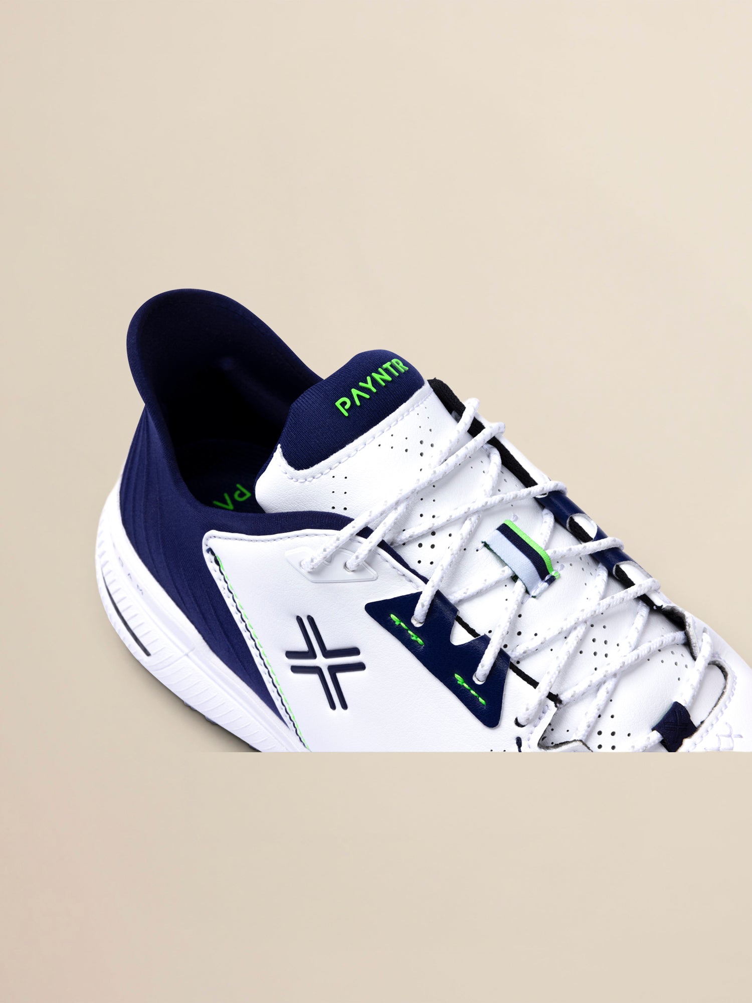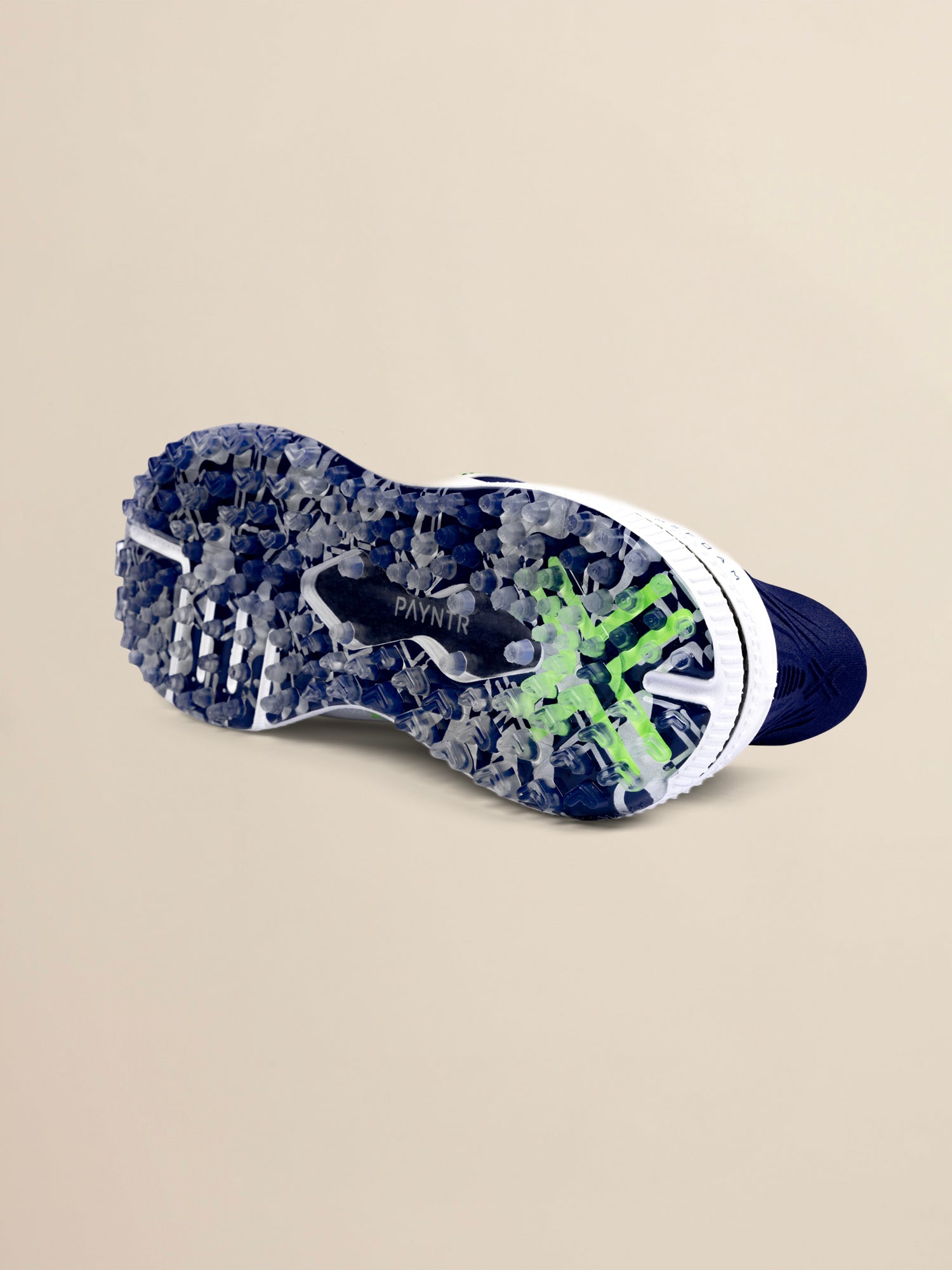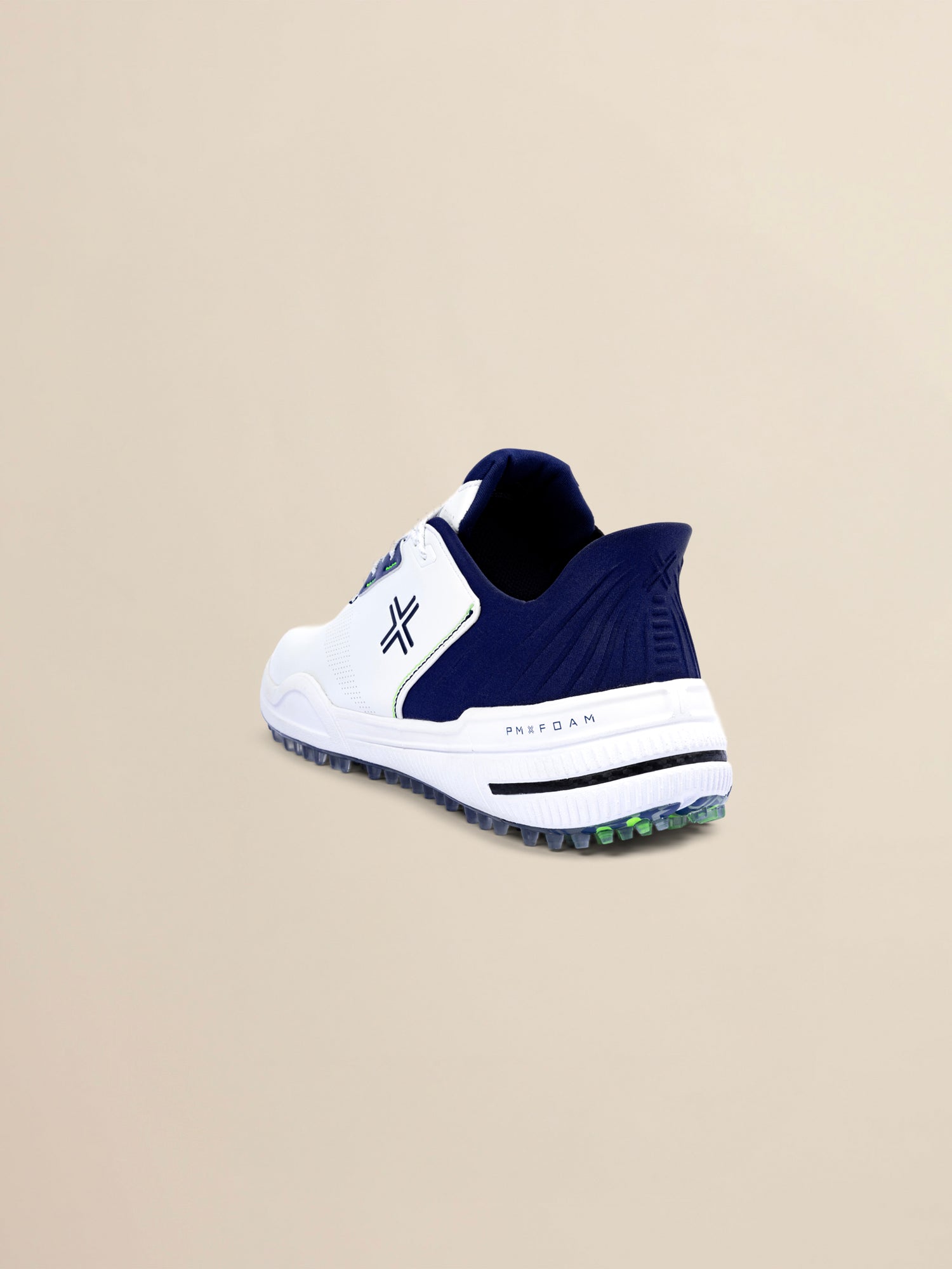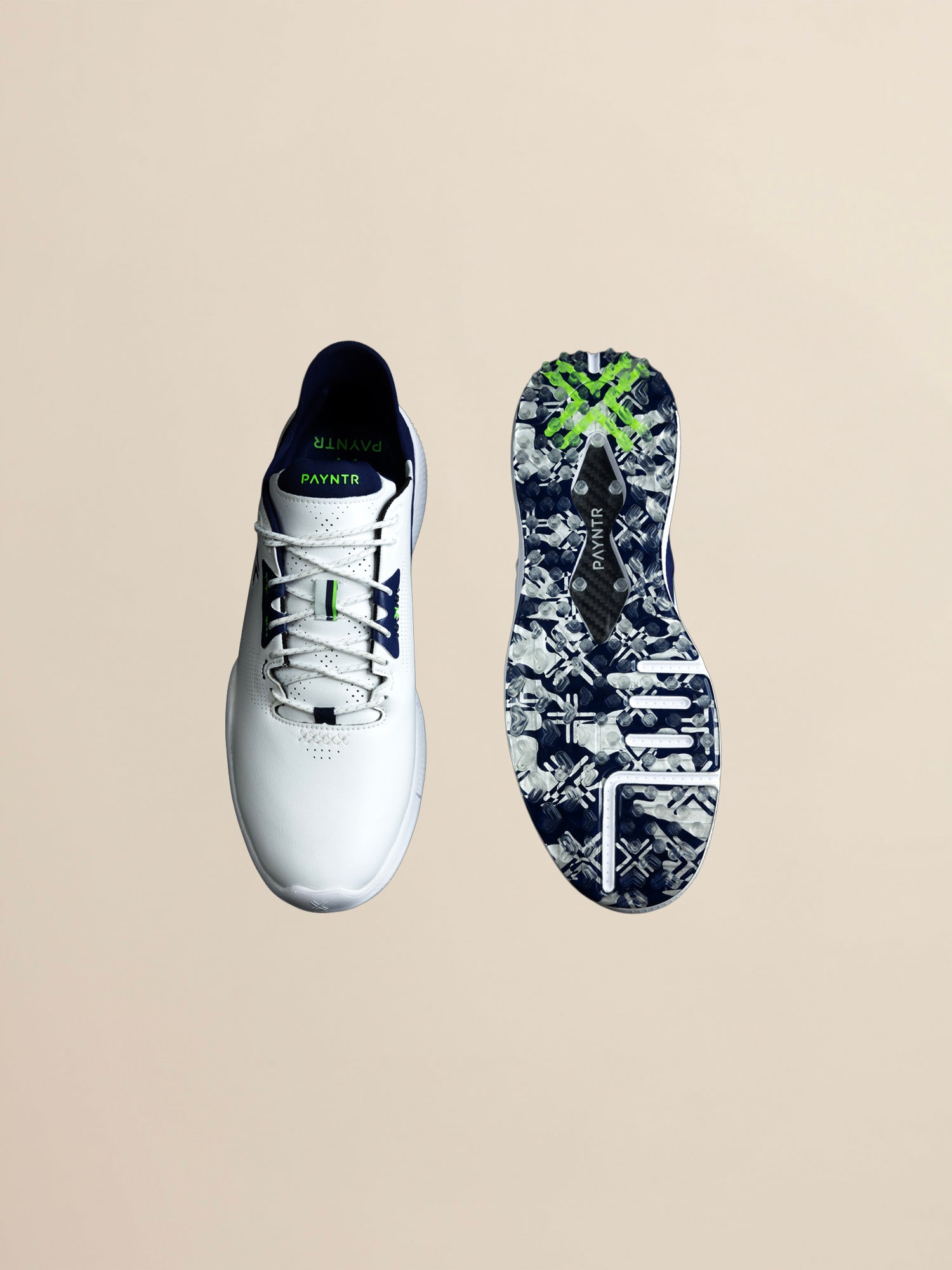 The X 005 delivers advanced performance in a sleek spikeless design. Featuring a CLARINO™️ Trivela microfiber upper with a blister-free PMX Fit heel counter, it offers all-day comfort and stability. A NEVERWET™️ superhydrophobic treatment repels water and dirt, while the Dual Density PMX Foam™️ midsole and PMXNitro+ footbed provide responsive cushioning. Finished with a graphite power plate and durable TPU outsole for traction and control on every swing.