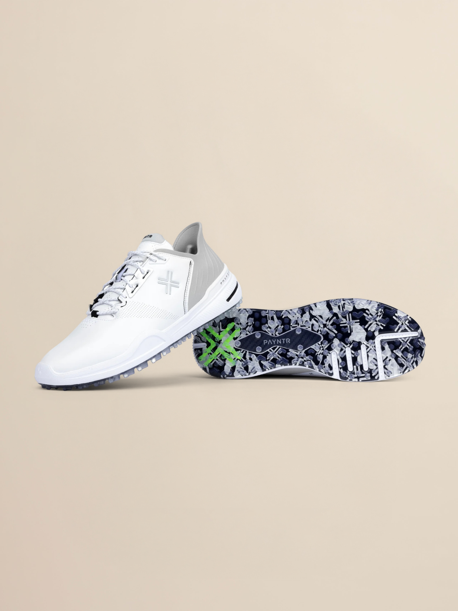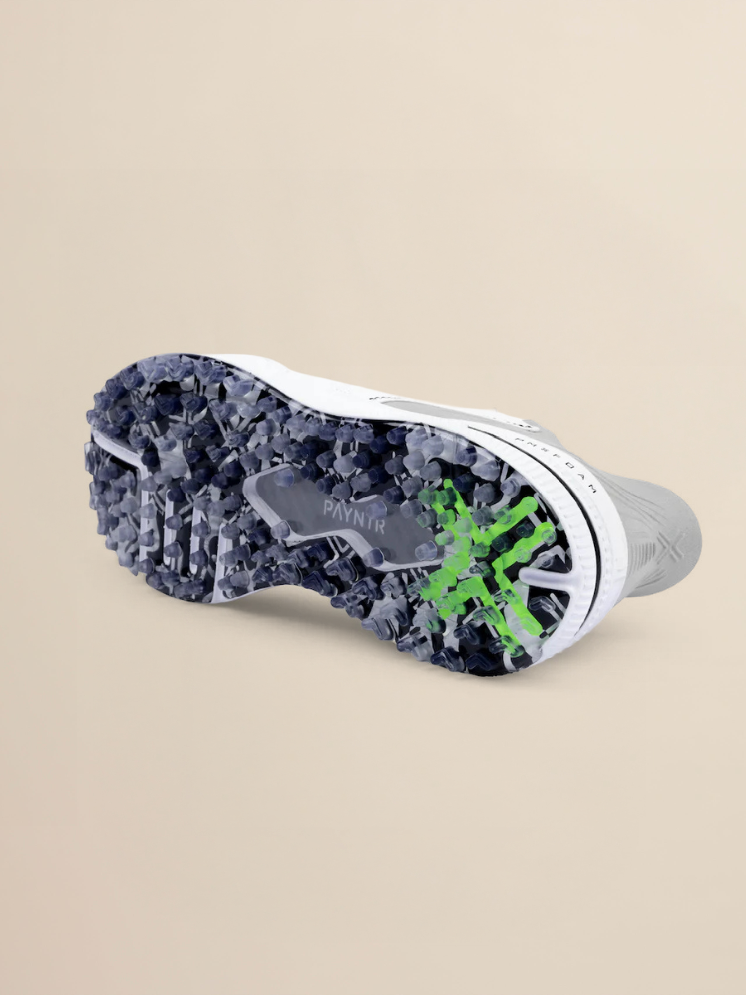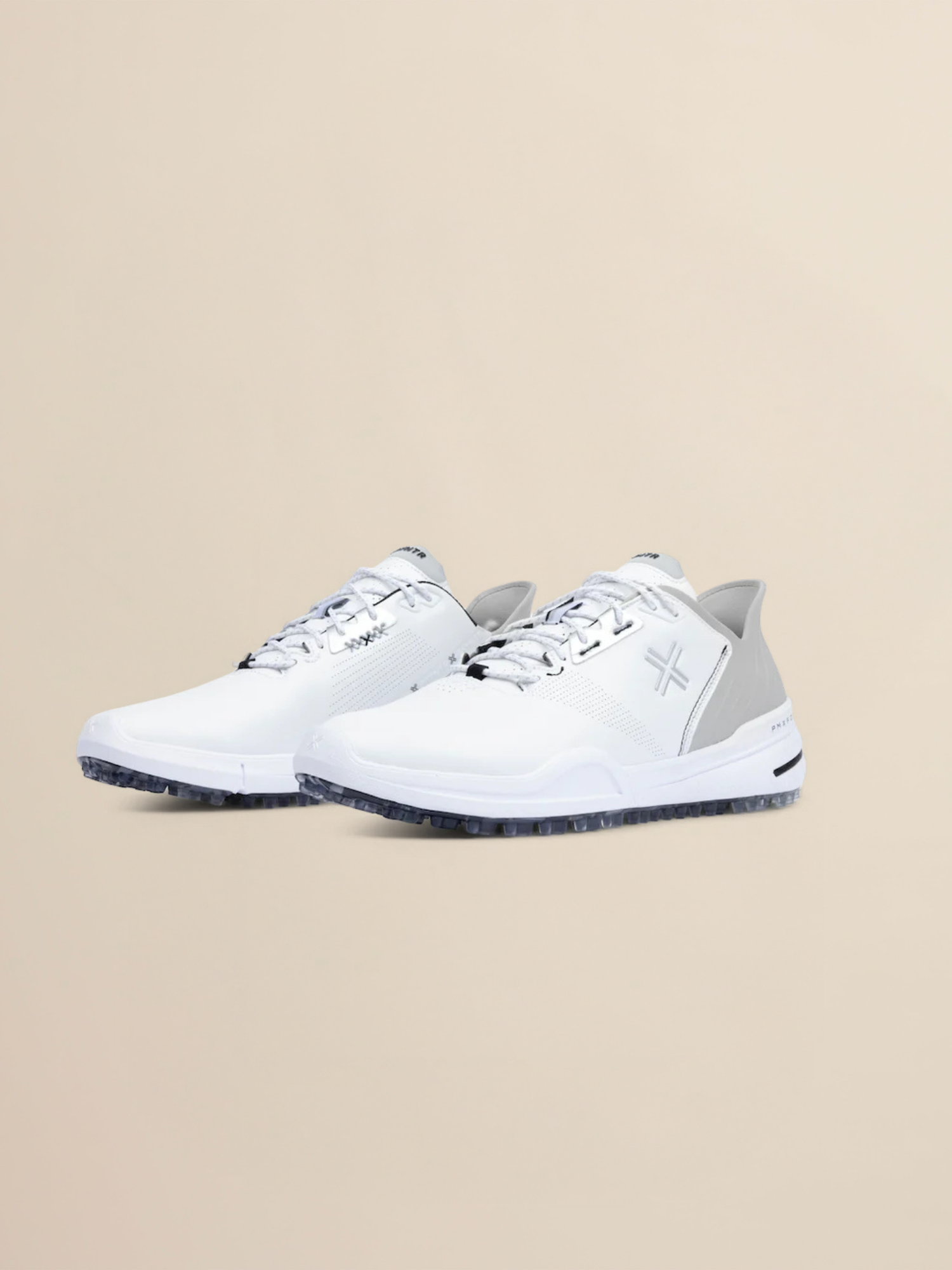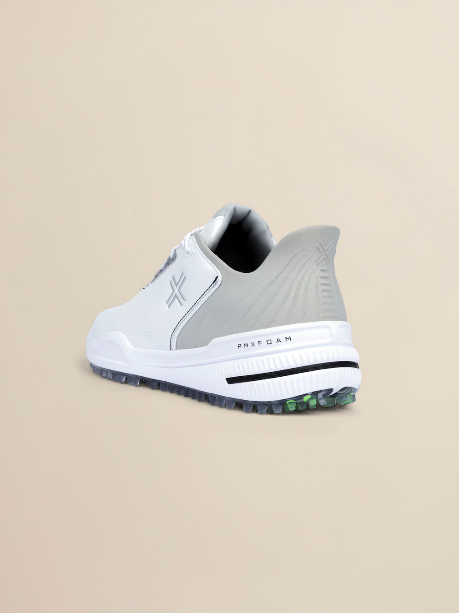 The X 005 delivers advanced performance in a sleek spikeless design. Featuring a CLARINO™️ Trivela microfiber upper with a blister-free PMX Fit heel counter, it offers all-day comfort and stability. A NEVERWET™️ superhydrophobic treatment repels water and dirt, while the Dual Density PMX Foam™️ midsole and PMXNitro+ footbed provide responsive cushioning. Finished with a graphite power plate and durable TPU outsole for traction and control on every swing.